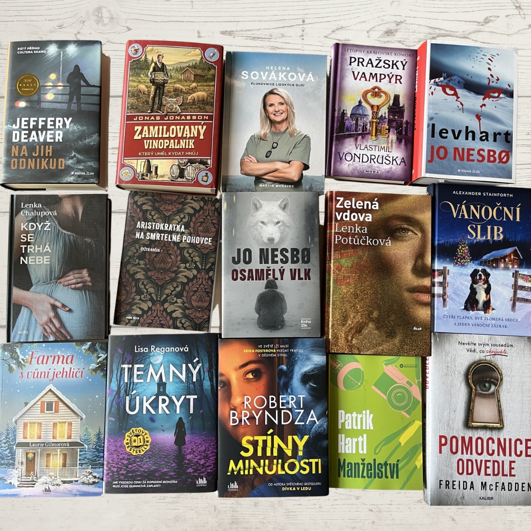 Populární autoři: Evžen Boček (Poslední aristokratka), Karin Lednická (Šikmý kostel), Michaela Klevisová (Vraní oko), Shari Lapena (Nevítaný host), Lisa Regan (Tichý pláč), Jo Nesbø (Zatmění), Lars Kepler (Pavouk), Kateřina Tučková (Žítkovské bohyně), Robert Brynza (ˇĎáblova cesta), Anne Jacobs (Trilogie Kavárna u Anděla)